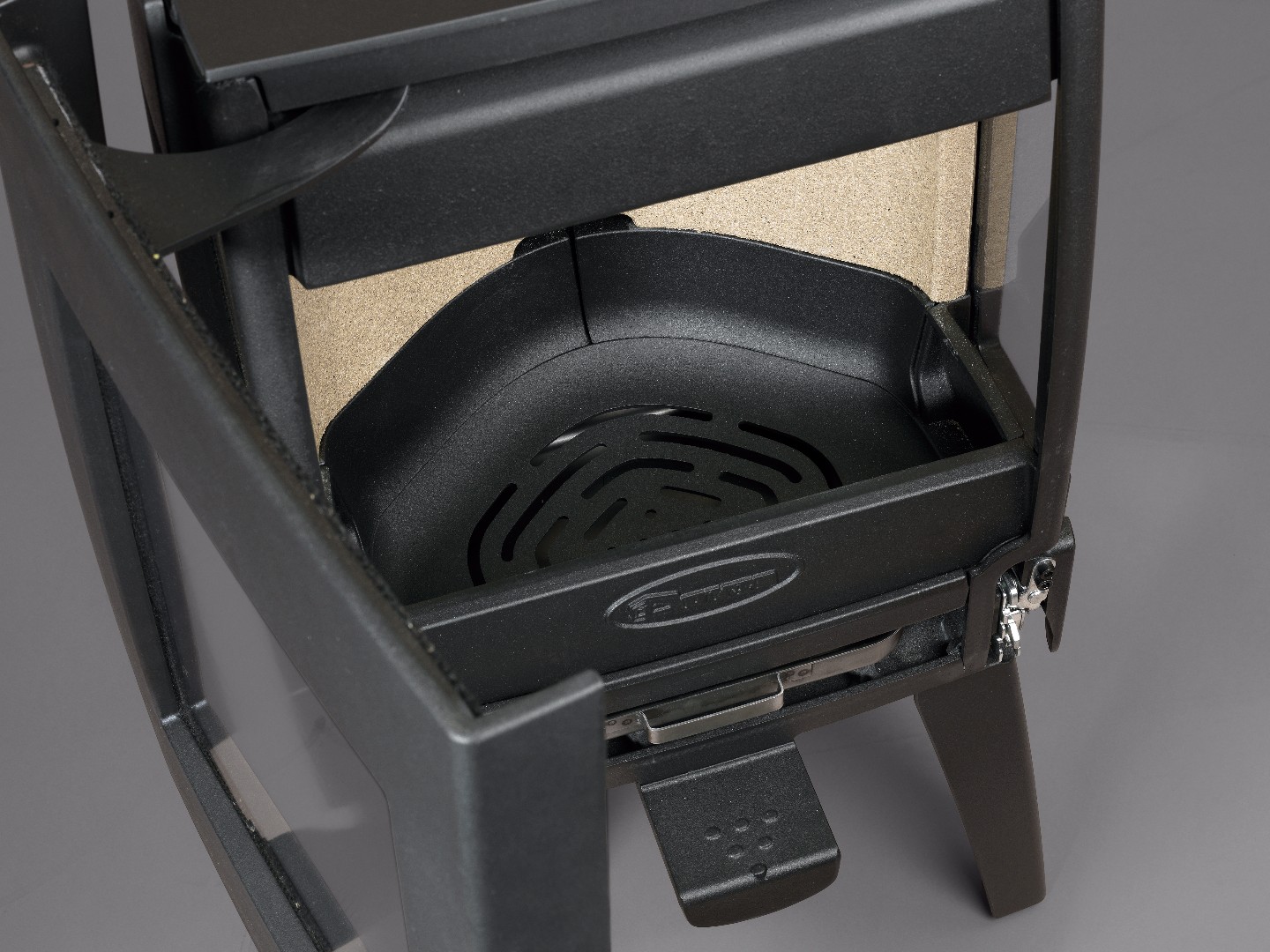 - Przyłącze powietrza z zewnątrz od tyłu (pozwala na 100% zasilenie piecyka powietrzem z zewnątrz do spalania);