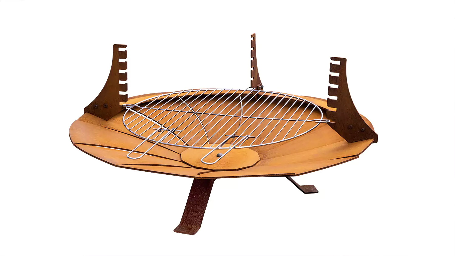 Palenisko wykonane ze stali Corten o grubości 4 mm. Ruszt wykonany ze stali nierdzewnej oraz przednia nadstawka ze stali Corten (dostępne osobno).