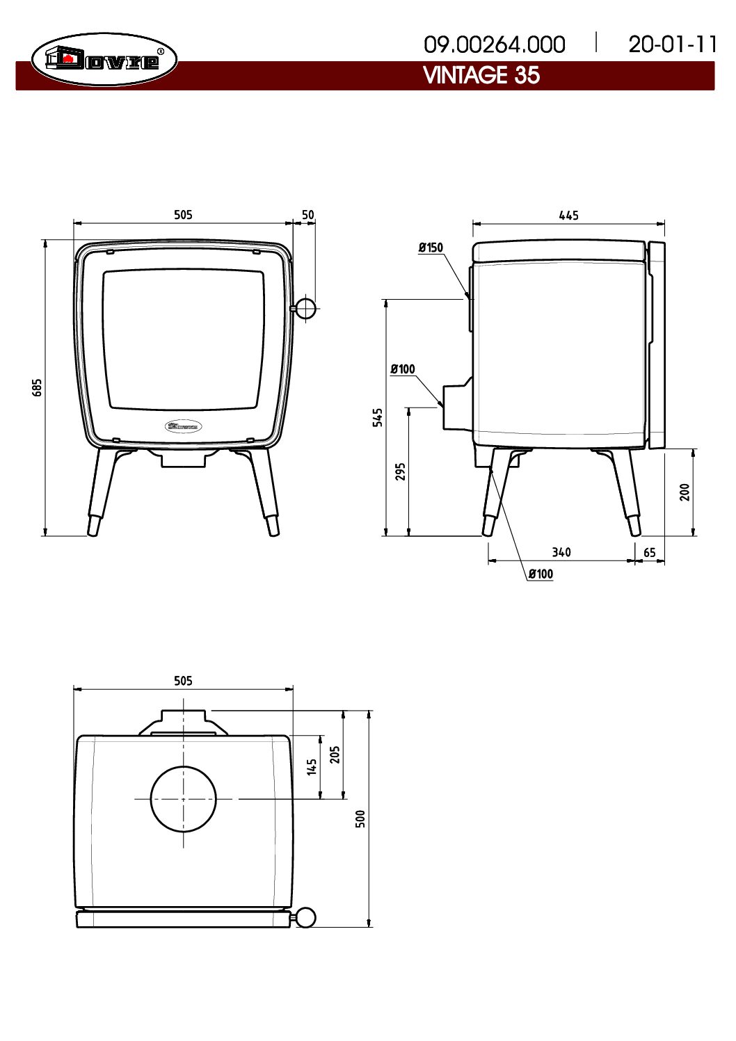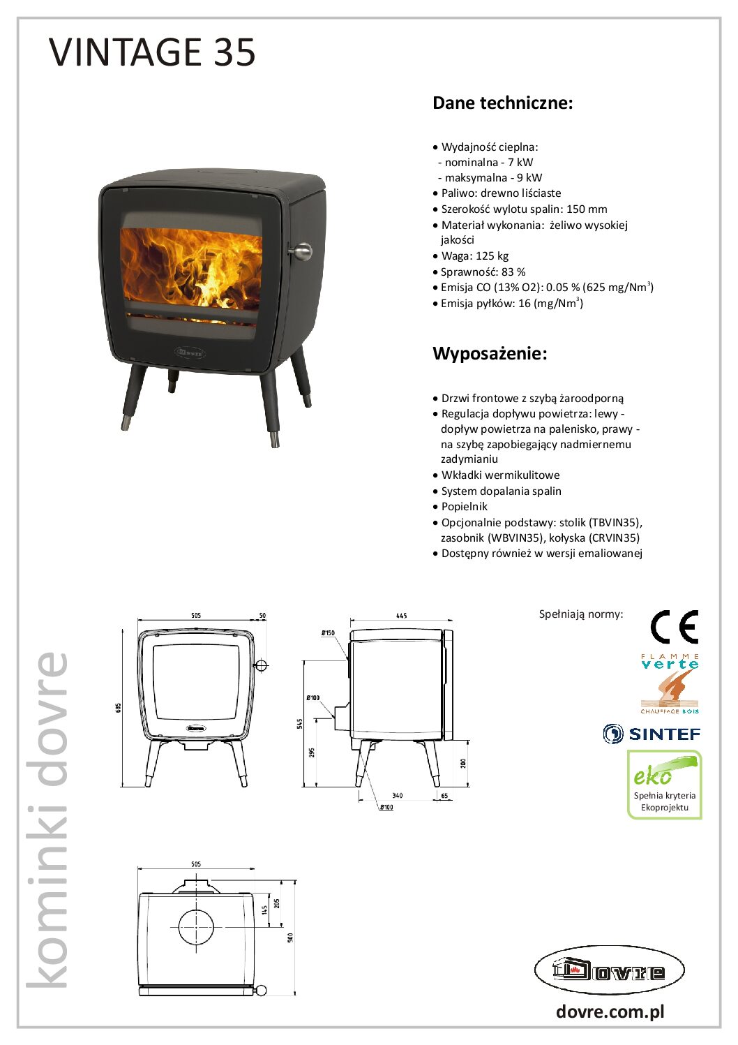 - Podłączenie do przewodu kominowego: fi 150 (od góry lub od tyłu);
