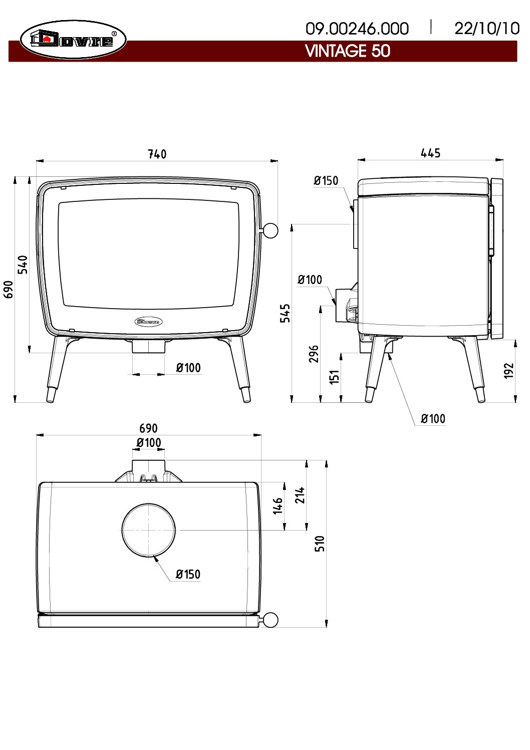 - Podłączenie do przewodu kominowego: fi 150 (od góry lub od tyłu);