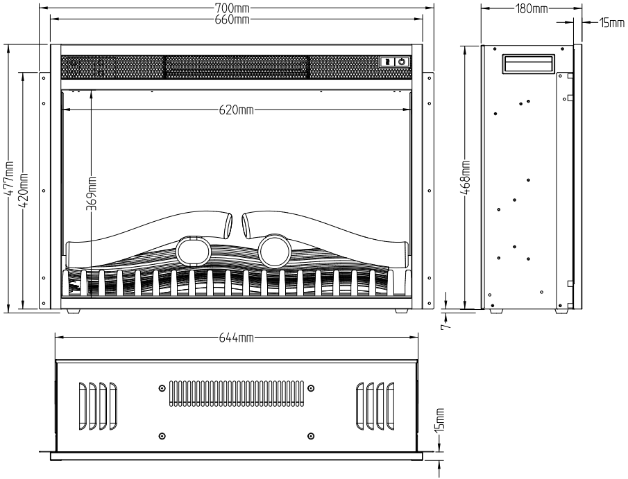 Wkład do zabudowy LED 70 Classic posiada realistyczny i energooszczędny płomień. Wkład jest ekologiczny, nie emituje do atmosfery dwutlenku węgla oraz innych szkodliwych substancji tak jak kominki na drewno i gazowe. Nie zanieczyszcza wnętrz sadzą czy popiołem. Pilot sterowania umożliwia zmianę funkcji na odległość. Zapewnia wygodę korzystania bez potrzeby wstawania z kanapy. Timer / Wyłącznik czasowy automatycznie wyłączy kominek. Ustawiasz i zapominasz. Jeśli zaśniesz to nie musisz martwić się, że kominek będzie działał całą noc. Funkcja grzania z wydmuchem pozwala błyskawicznie ogrzać pomieszczenie i utrzymać komfortową temperaturę. Nie wymaga dodatkowej wentylacji. Nie trzeba wietrzyć pomieszczenia i jednocześnie wpuszczać zimnego czy wilgotnego powietrza. Nie trzeba otwierać okna i wpuszczać hałasu z zewnątrz. Grzejnik posiada 2 poziomy mocy do wyboru. Termostat pozwala osiągnąć i utrzymać komfortową temperaturę w zakresie 10-30°C