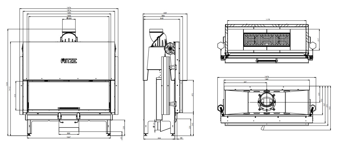 - Wkład z powiększoną, głęboką prostokątna komorą spalania dająca możliwość dużych załadunków.