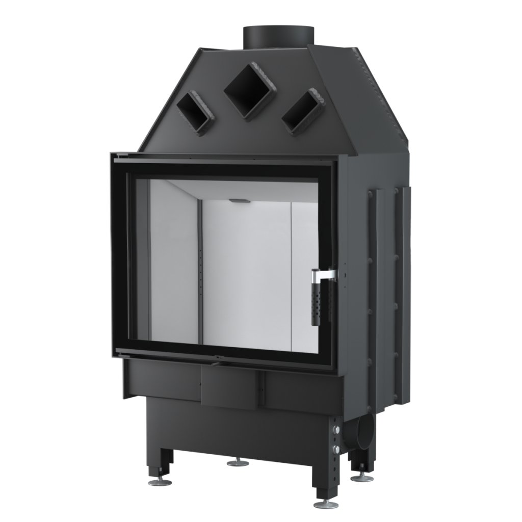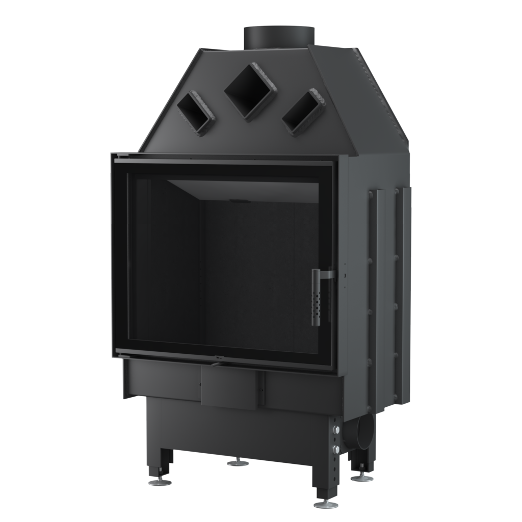 - Współpraca z wentylacją mechaniczną – Dzięki szczelności całego korpusu oraz możliwości podłączenia powietrza z zewnątrz budynku wkład może być z powodzeniem stosowany w pomieszczeniach z rekuperacją (w przypadku wkładów narożnych wymaga to zastosowania jednolitej szyby).