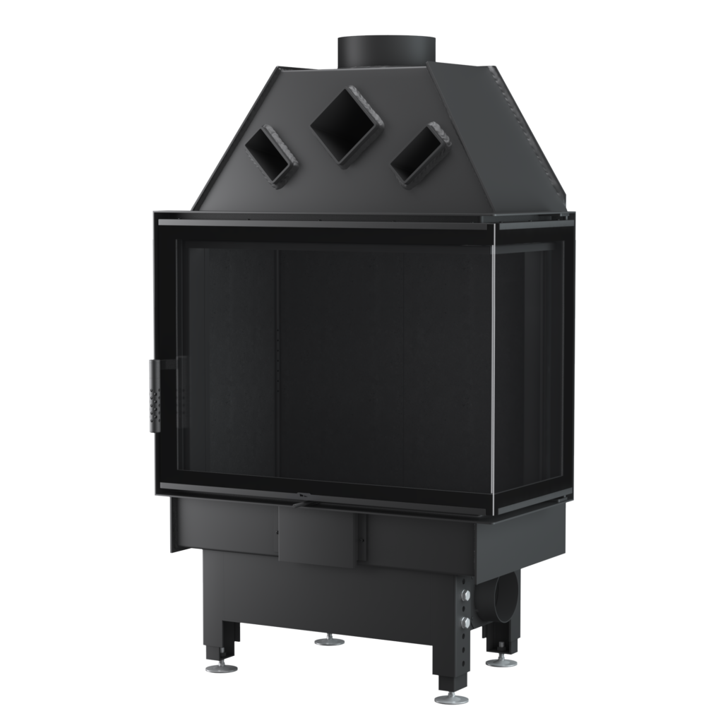 - Współpraca z wentylacją mechaniczną – Dzięki szczelności całego korpusu oraz możliwości podłączenia powietrza z zewnątrz budynku wkład może być z powodzeniem stosowany w pomieszczeniach z rekuperacją (w przypadku wkładów narożnych wymaga to zastosowania jednolitej szyby).