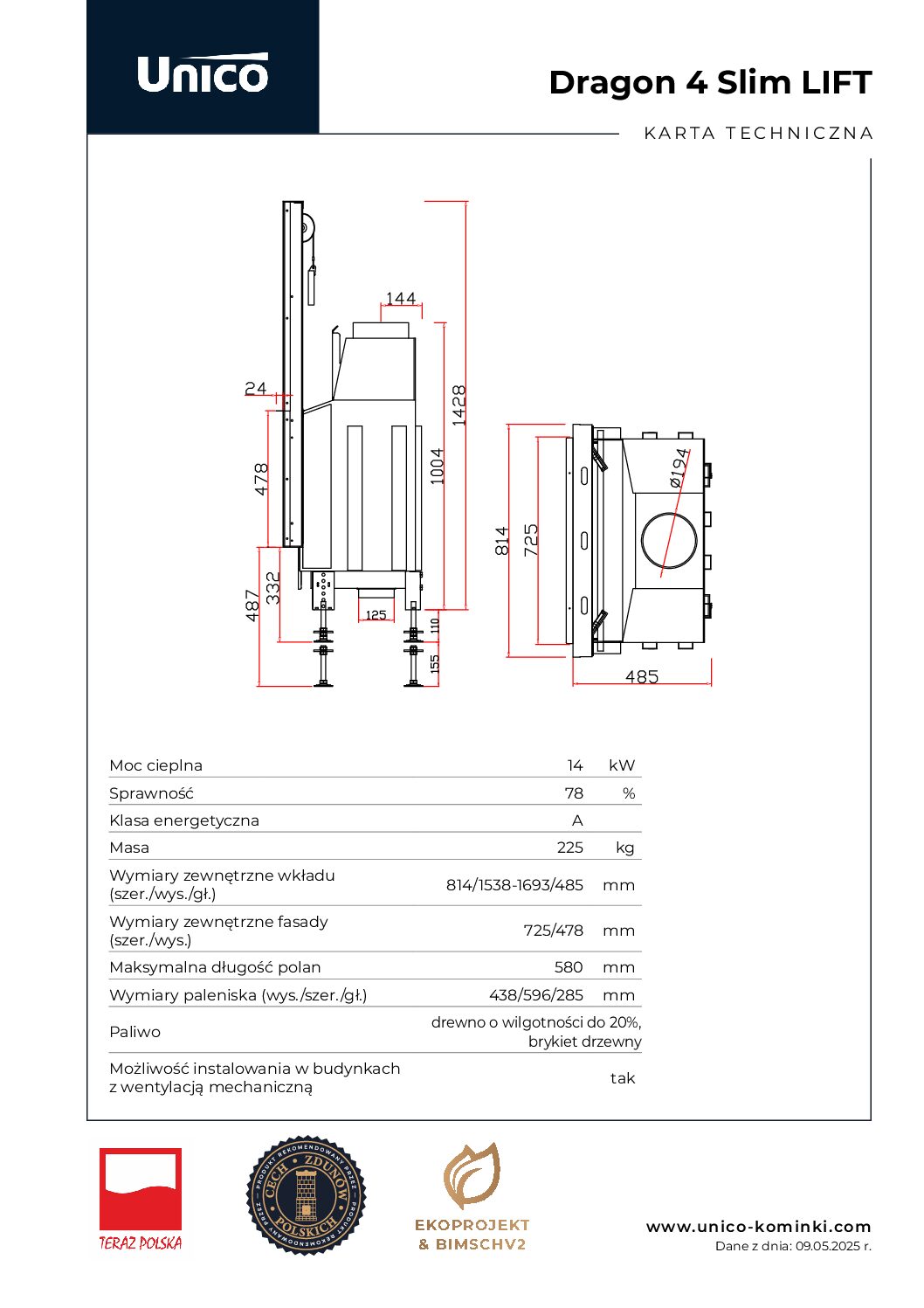 - Szeroki wachlarz zastosowań – Wkład Dragon może być przeznaczony zarówno do rekreacyjnego, weekendowego palenia, jak i do zapewniania domownikom ciepła na co dzień. Sprawdzi się i w ciepłej zabudowie, i tradycyjnej zabudowie konwekcyjnej.