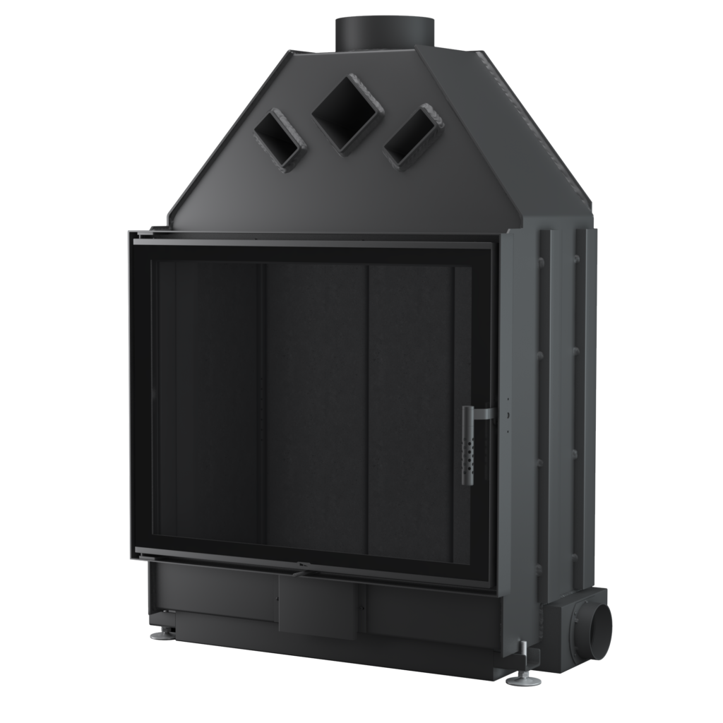- Współpraca z wentylacją mechaniczną – Dzięki szczelności całego korpusu oraz możliwości podłączenia powietrza z zewnątrz budynku wkład może być z powodzeniem stosowany w pomieszczeniach z rekuperacją (w przypadku wkładów narożnych wymaga to zastosowania jednolitej szyby).