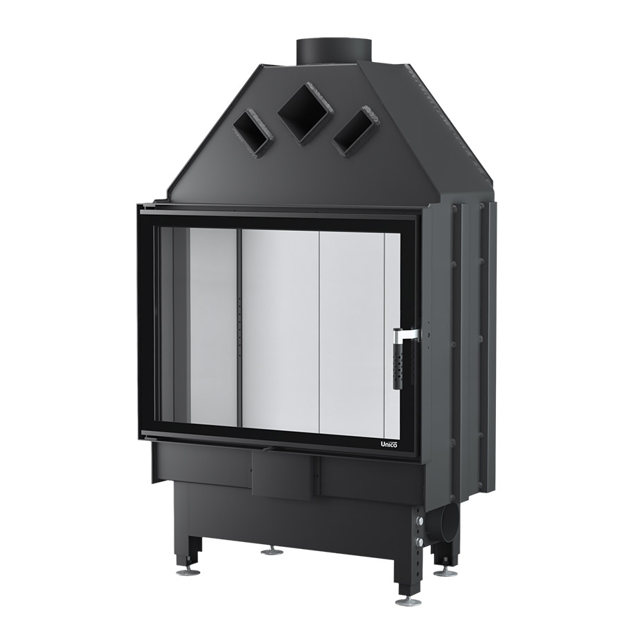 Wszystkie wkłady UNICO, również wkłady narożne, mogą zostać uzupełnione o podwójną szybę, która w przypadku kominków z płaszczem wodnym pozwala na przekazanie większej ilości energii do układu wodnego. Podwójna szyba sprawdzi się także w modelach konwekcyjnych, zainstalowanych w tak zwanych ciepłych zabudowach. Dzięki temu rozwiązaniu w komorze uzyskuje się o wiele większe temperatury, co wpływa korzystnie na proces spalania.