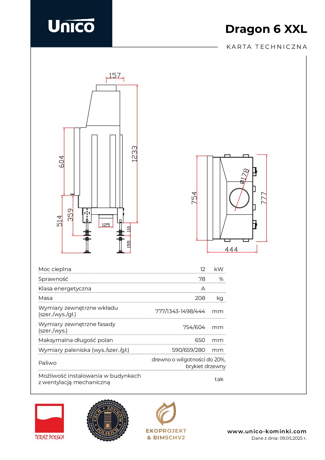 - Szeroki wachlarz zastosowań – Wkład Dragon może być przeznaczony zarówno do rekreacyjnego, weekendowego palenia, jak i do zapewniania domownikom ciepła na co dzień. Sprawdzi się i w ciepłej zabudowie, i tradycyjnej zabudowie konwekcyjnej.