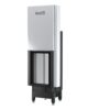 - Doprowadzenie powietrza z zewnątrz – Wkład seryjnie wyposażony jest w kolektor doprowadzający powietrze z zewnątrz budynku. Dla wygody instalacyjnej wpięcie do kolektora jest możliwe z trzech stron – z prawej, lewej i od tyłu (po zamontowaniu go dwa pozostałe wpięcia należy zaślepić).