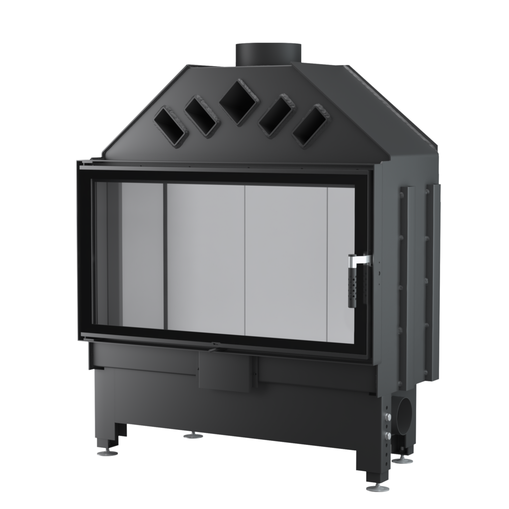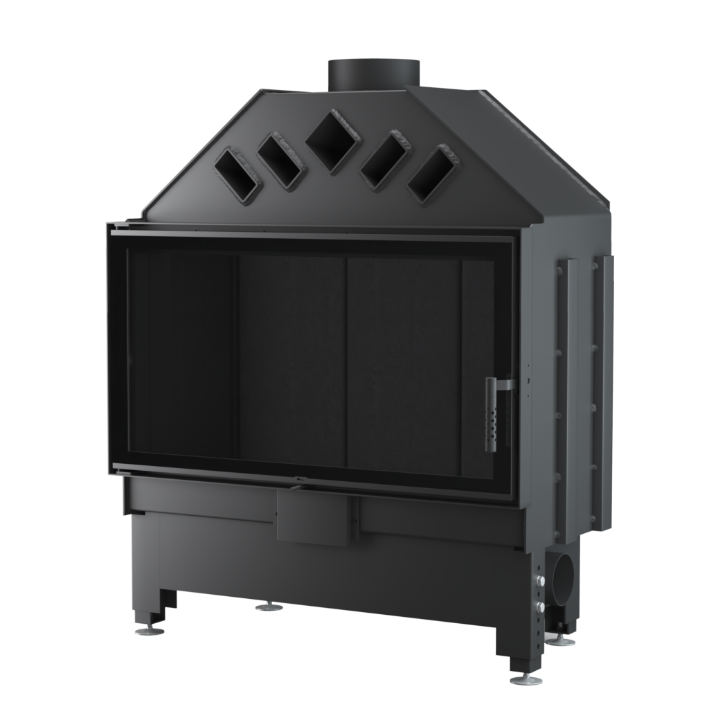 - Współpraca z wentylacją mechaniczną – Dzięki szczelności całego korpusu oraz możliwości podłączenia powietrza z zewnątrz budynku wkład może być z powodzeniem stosowany w pomieszczeniach z rekuperacją (w przypadku wkładów narożnych wymaga to zastosowania jednolitej szyby).