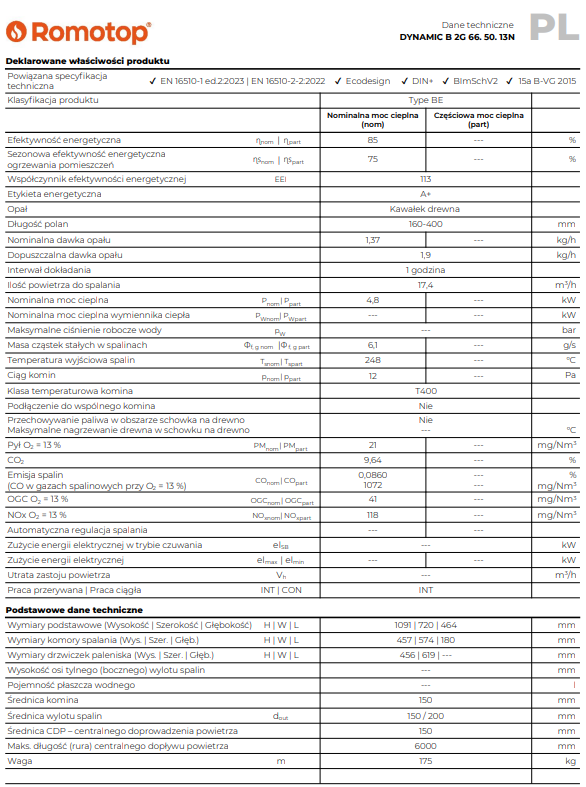 - Wymiary drzwiczek paleniska (Wys. | Szer. | Głęb.) – 456 | 619 | — mm