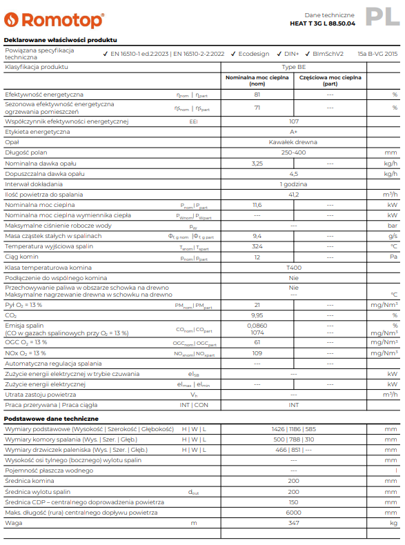 - Wymiary drzwiczek paleniska (Wys. | Szer. | Głęb.) – 466 | 851 | — mm