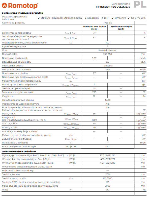 - Wymiary komory spalania (Wys. | Szer. | Głęb.) – 450 | 523 | 261 mm