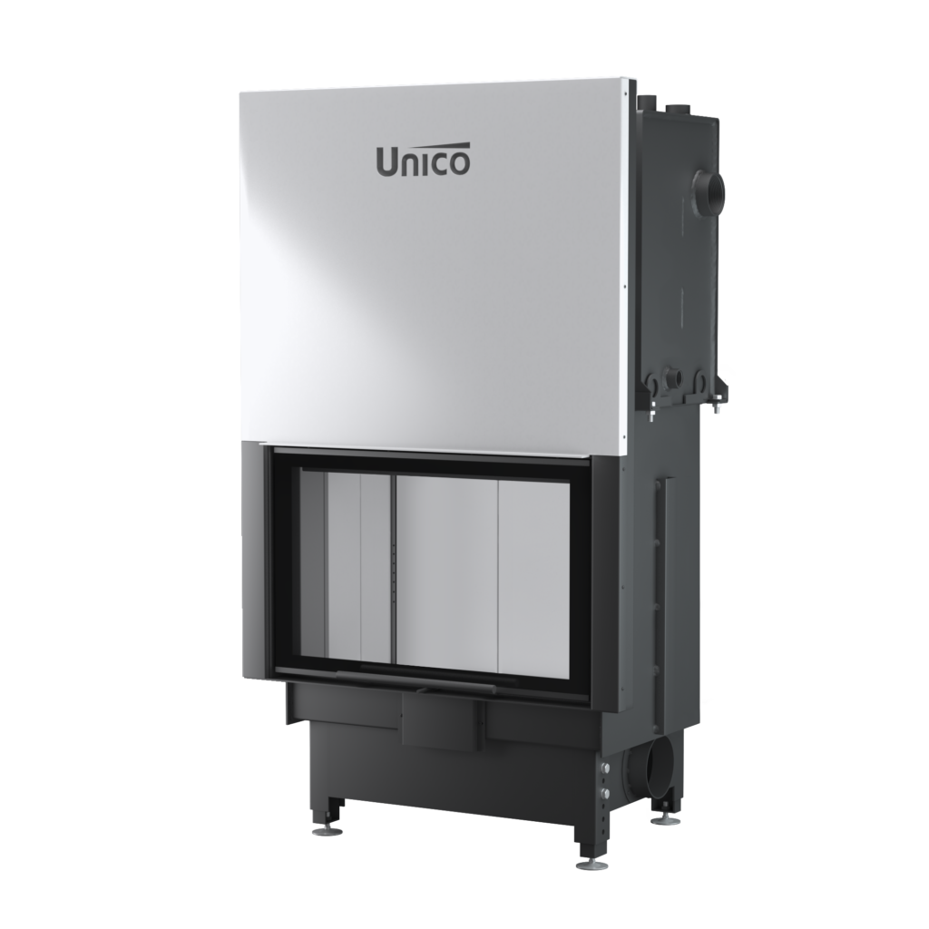 Wszystkie wkłady UNICO, również wkłady narożne, mogą zostać uzupełnione o podwójną szybę, która w przypadku kominków z płaszczem wodnym pozwala na przekazanie większej ilości energii do układu wodnego. Podwójna szyba sprawdzi się także w modelach konwekcyjnych, zainstalowanych w tak zwanych ciepłych zabudowach. Dzięki temu rozwiązaniu w komorze uzyskuje się o wiele większe temperatury, co wpływa korzystnie na proces spalania.