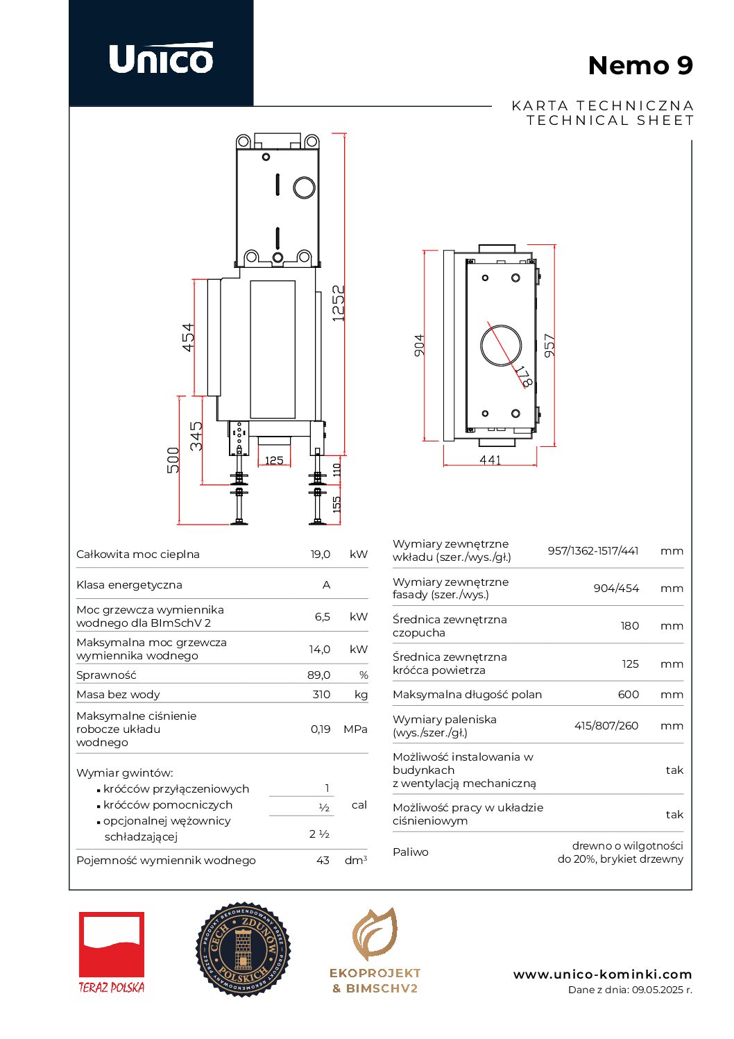 Hybrydowy system grzewczy łączący pompę ciepła z kominkiem opalanym drewnem to nowoczesne i niezawodne rozwiązanie, które integruje zalety technologii odnawialnych z tradycyjnym źródłem ciepła. Gwarantuje wysoką efektywność energetyczną, niezależność i komfort cieplny, nawet w warunkach ekstremalnych. Pompa ciepła – szczególnie w wersji powietrze-woda lub gruntowej – zapewnia wyjątkowo efektywne ogrzewanie przy niskim zużyciu energii, wykorzystując odnawialne źródła. Jednak przy bardzo niskich temperaturach jej sprawność może spadać. W takich momentach niezastąpioną rolę odgrywa kominek na drewno. Kominki z płaszczem wodnym Unico Nemo efektywnie współpracują z instalacją centralnego ogrzewania i zbiornikami buforowymi, umożliwiając równomierne rozprowadzanie ciepła w całym budynku. Zintegrowany system sterowania pozwala na optymalizację pracy zarówno kominka, jak i całej instalacji grzewczej oraz ciepłej wody użytkowej.