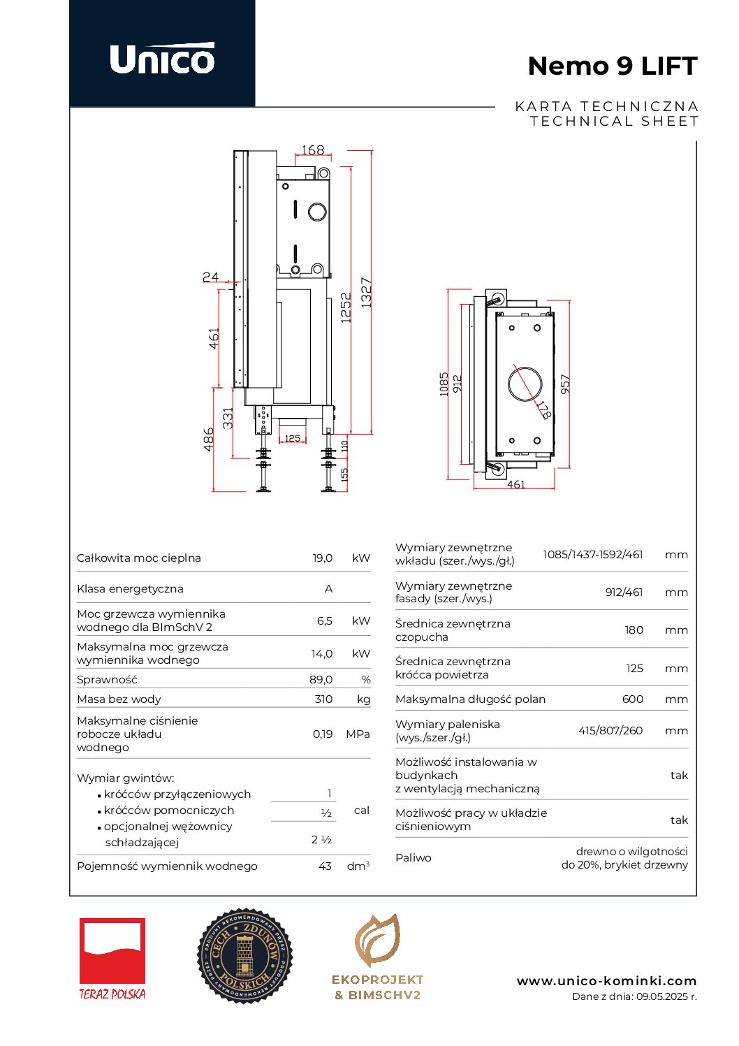 Hybrydowy system grzewczy łączący pompę ciepła z kominkiem opalanym drewnem to nowoczesne i niezawodne rozwiązanie, które integruje zalety technologii odnawialnych z tradycyjnym źródłem ciepła. Gwarantuje wysoką efektywność energetyczną, niezależność i komfort cieplny, nawet w warunkach ekstremalnych. Pompa ciepła – szczególnie w wersji powietrze-woda lub gruntowej – zapewnia wyjątkowo efektywne ogrzewanie przy niskim zużyciu energii, wykorzystując odnawialne źródła. Jednak przy bardzo niskich temperaturach jej sprawność może spadać. W takich momentach niezastąpioną rolę odgrywa kominek na drewno. Kominki z płaszczem wodnym Unico Nemo efektywnie współpracują z instalacją centralnego ogrzewania i zbiornikami buforowymi, umożliwiając równomierne rozprowadzanie ciepła w całym budynku. Zintegrowany system sterowania pozwala na optymalizację pracy zarówno kominka, jak i całej instalacji grzewczej oraz ciepłej wody użytkowej.