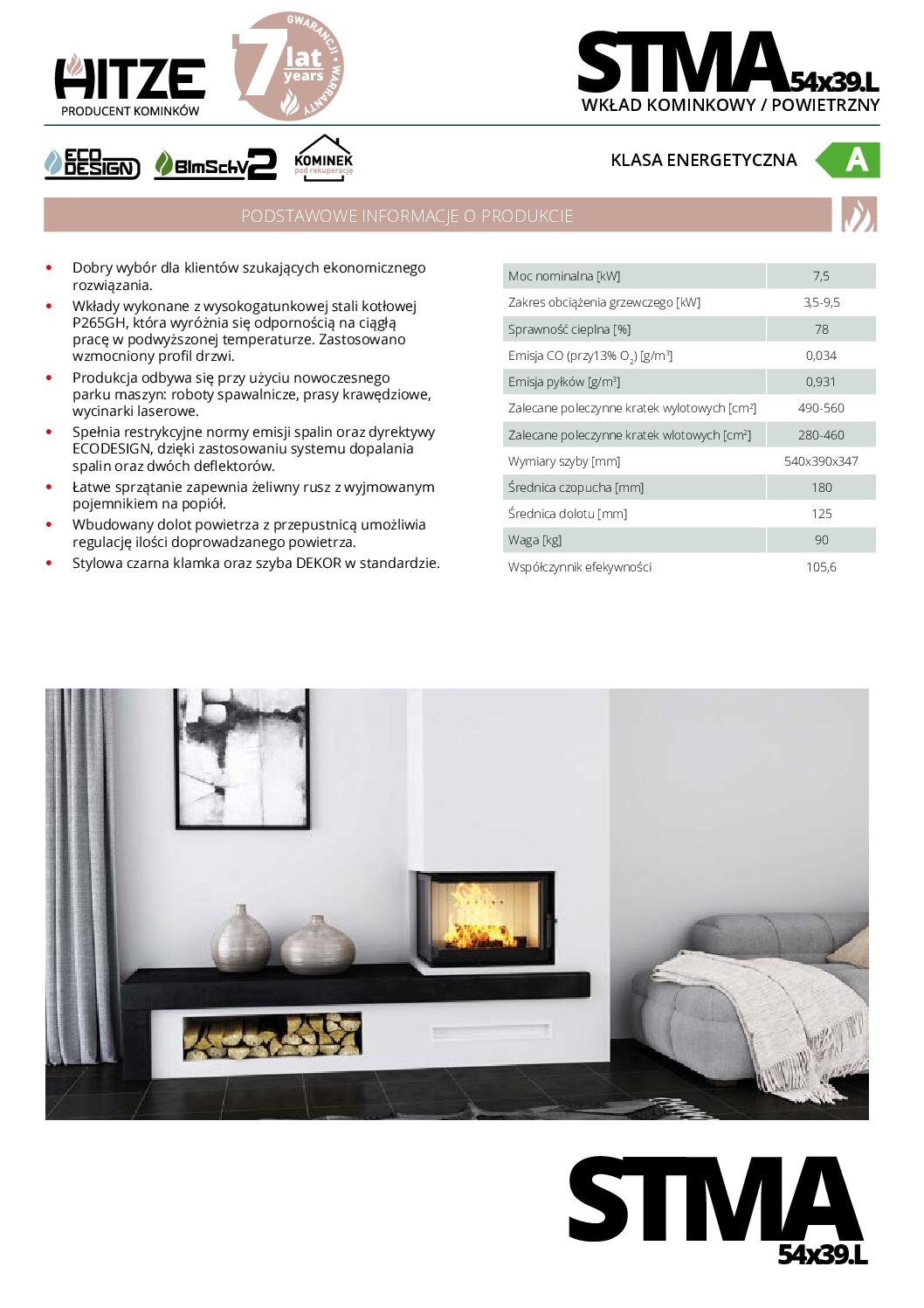 Wkład kominkowy STMA 54×39.L jest przystosowany do współpracy z systemami rekuperacji, co pozwala na efektywne wykorzystanie energii. Wyposażony w żaroodporne szkło ceramiczne, które wytrzymuje temperatury do 800°C, zapewnia bezpieczne i wydajne spalanie. W standardzie kominek posiada stalową podstawę z przepustnicą dolotu zimnego powietrza zewnętrznego, co zwiększa komfort użytkowania i oszczędność energii.