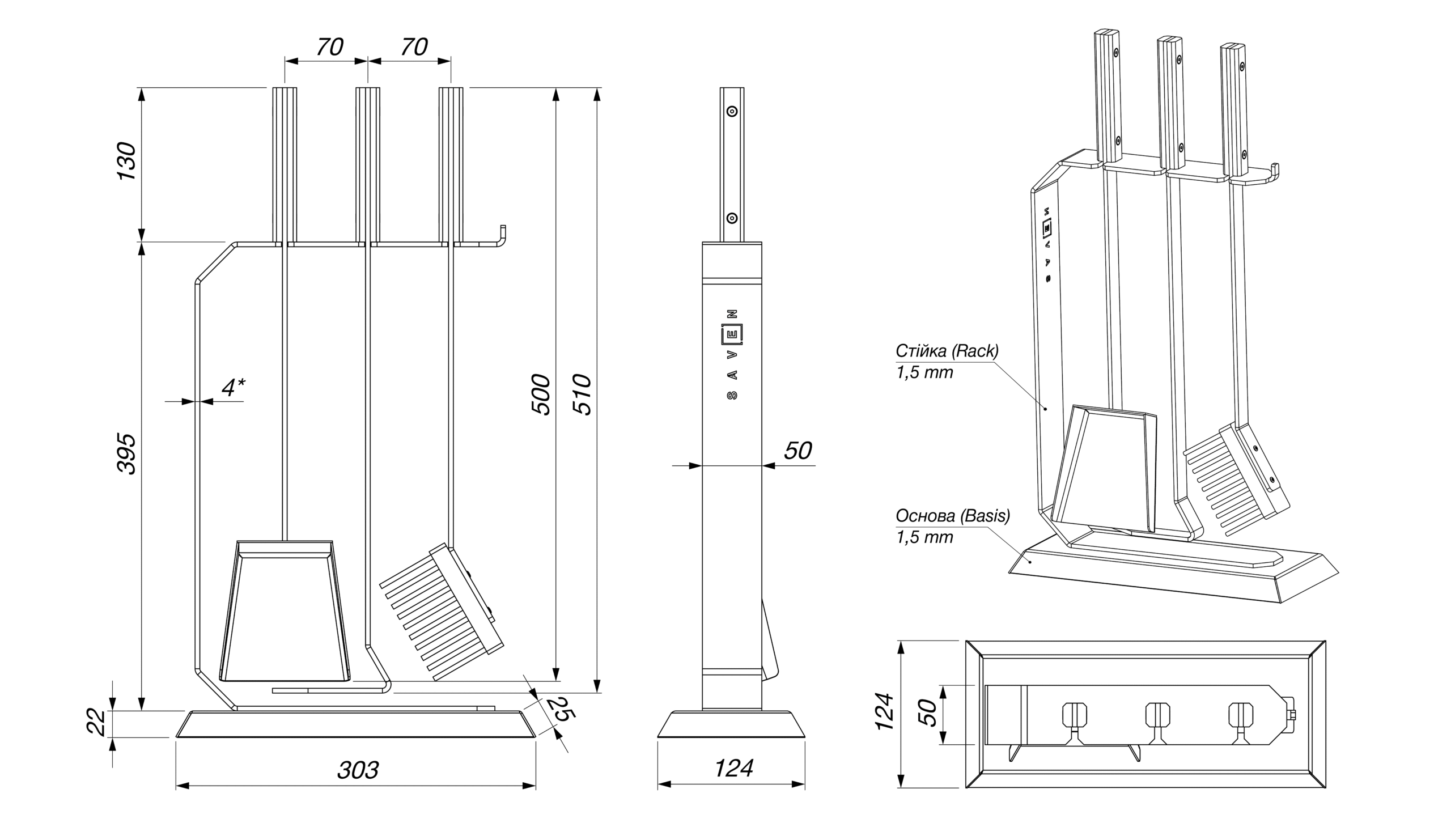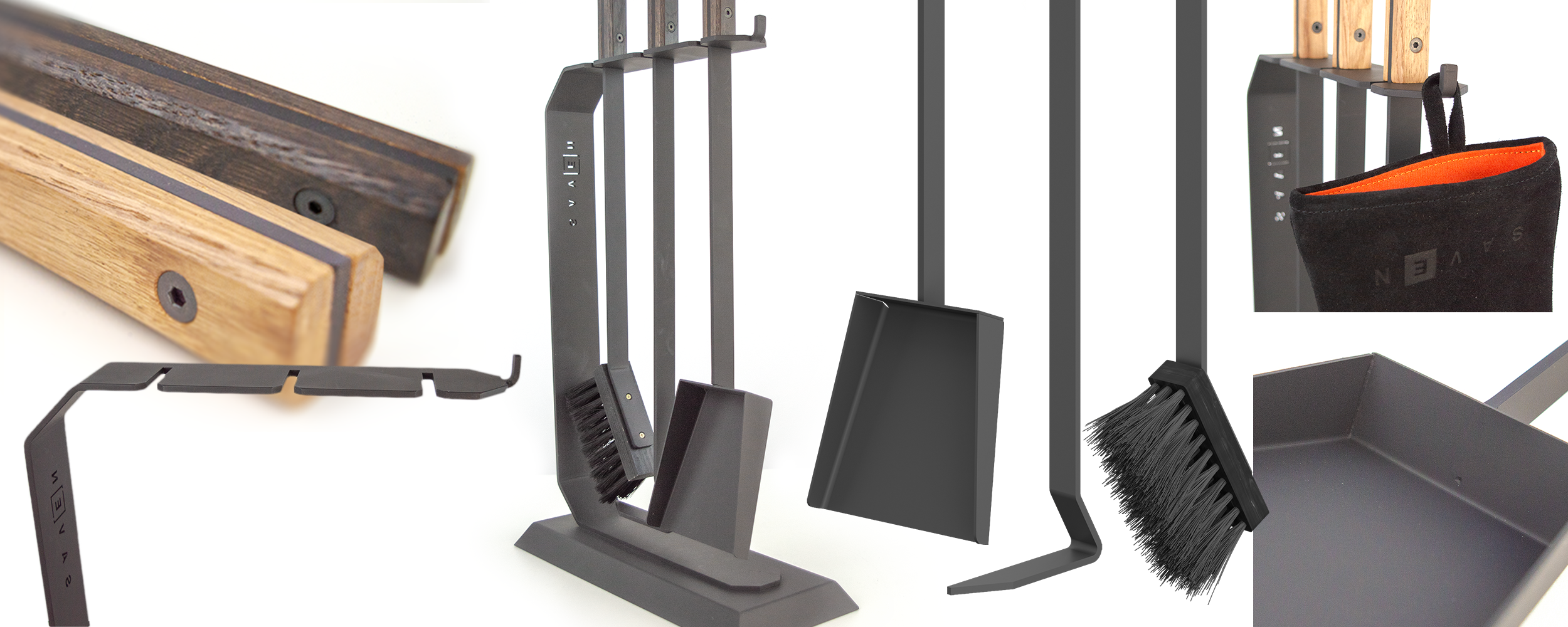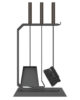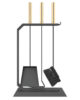 - w zestawie znajdują się po trzy elementy, niezbędne do pielęgnacji kominka: łopata do popiołu, szczotka i pogrzebacz;