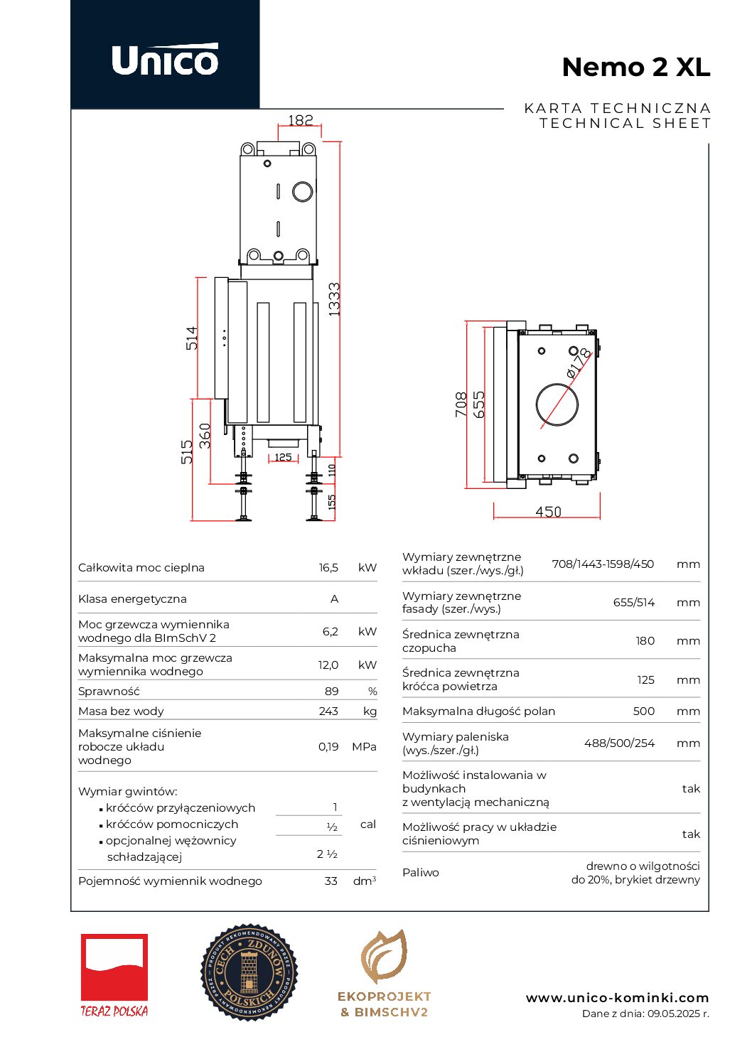 Wkład kominkowy Dragon 8 XXL Duo Lift